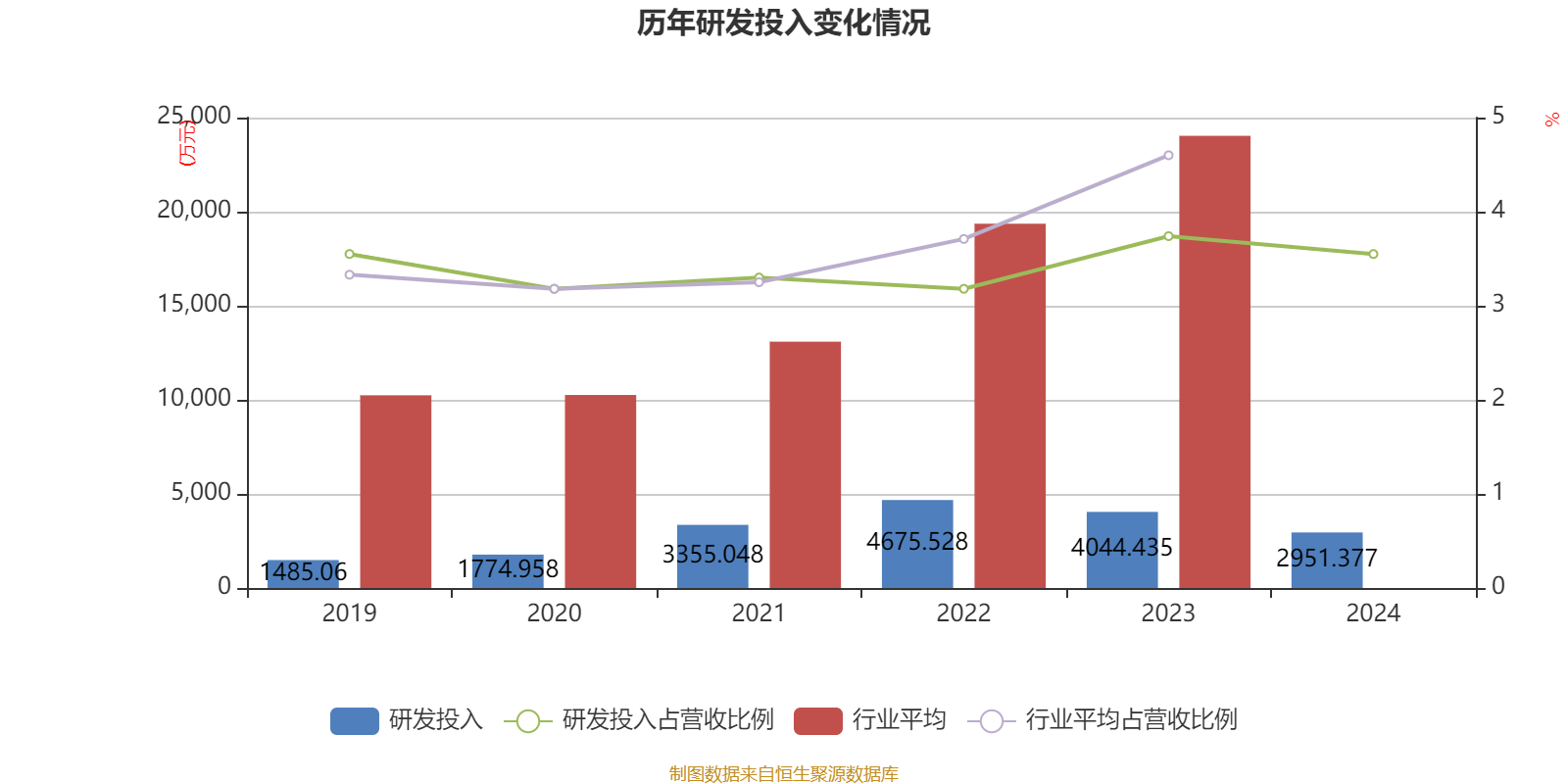 2024年全年,公司研发投入金额为2951.38万元,同比下降27.03%;研发投入占营业收入比例为3.55%,相比上年同期下降0.19个百分点。此外,公司全年研发投入资本化率为0%。