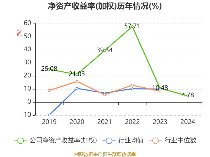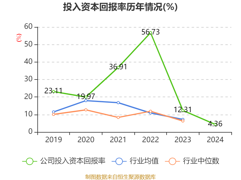 数据显示,2024年公司加权平均净资产收益率为4.78%,较上年同期下降5.7个百分点。公司2024年投入资本回报率为4.36%,较上年同期下降7.95个百分点。
