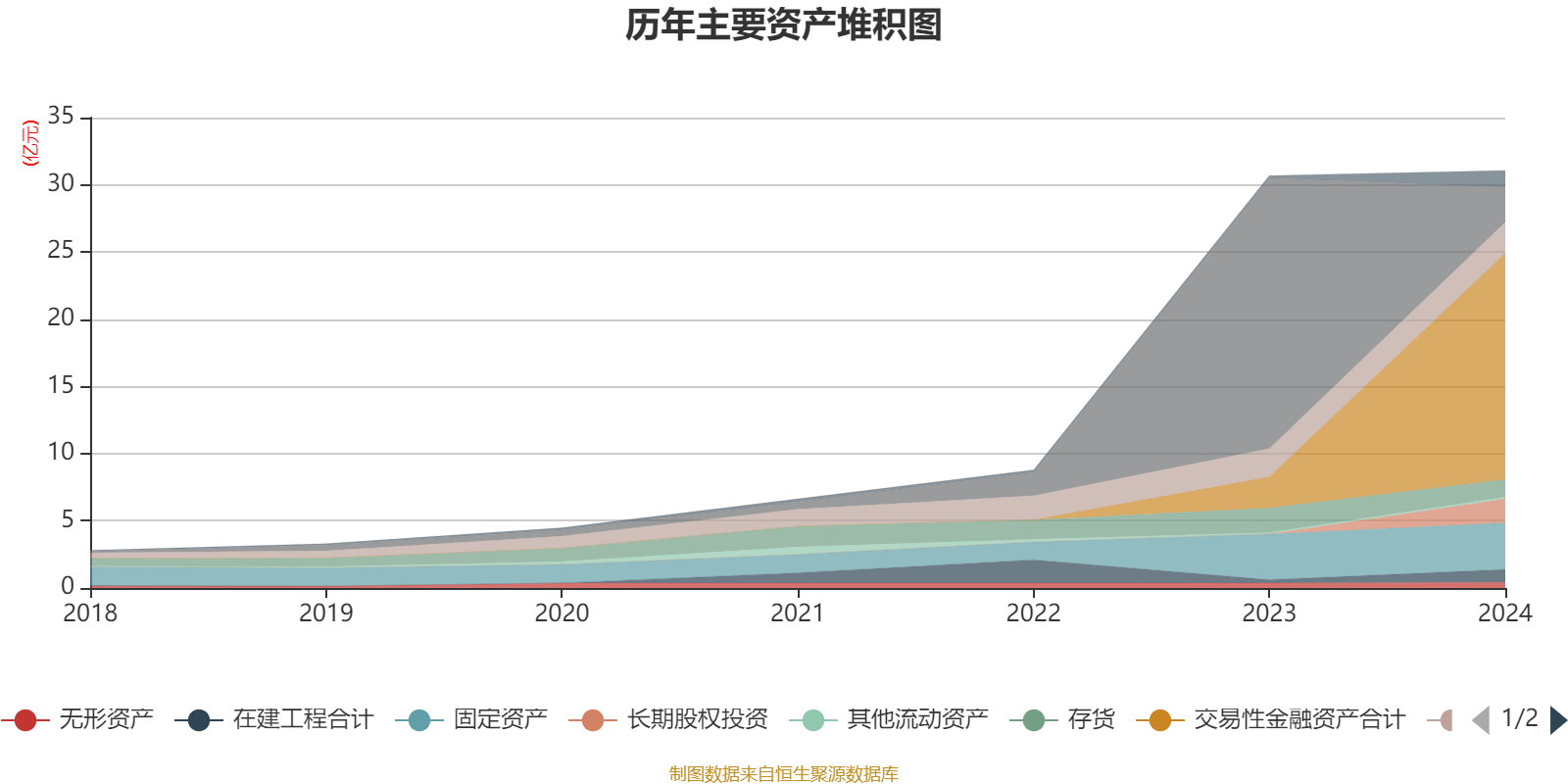 资产重大变化方面,截至2024年末,公司货币资金较上年末减少87.16%,占公司总资产比重下降57.28个百分点;交易性金融资产合计较上年末增加627.7%,占公司总资产比重上升46.68个百分点;长期股权投资占公司总资产的5.77%维海配资,上年末为0;其他非流动资产较上年末增加11555.85%,占公司总资产比重上升2.87个百分点。